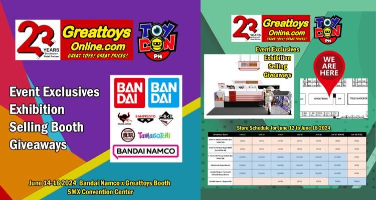 Toycon 2024 is happening on June 14 to 16, 2024 at the SMX Convention Center, tickets are available for purchase right here. You can find the GreattoysOnline.com Booth right at the Function Hall 2 door and beside Filbars’ booth.