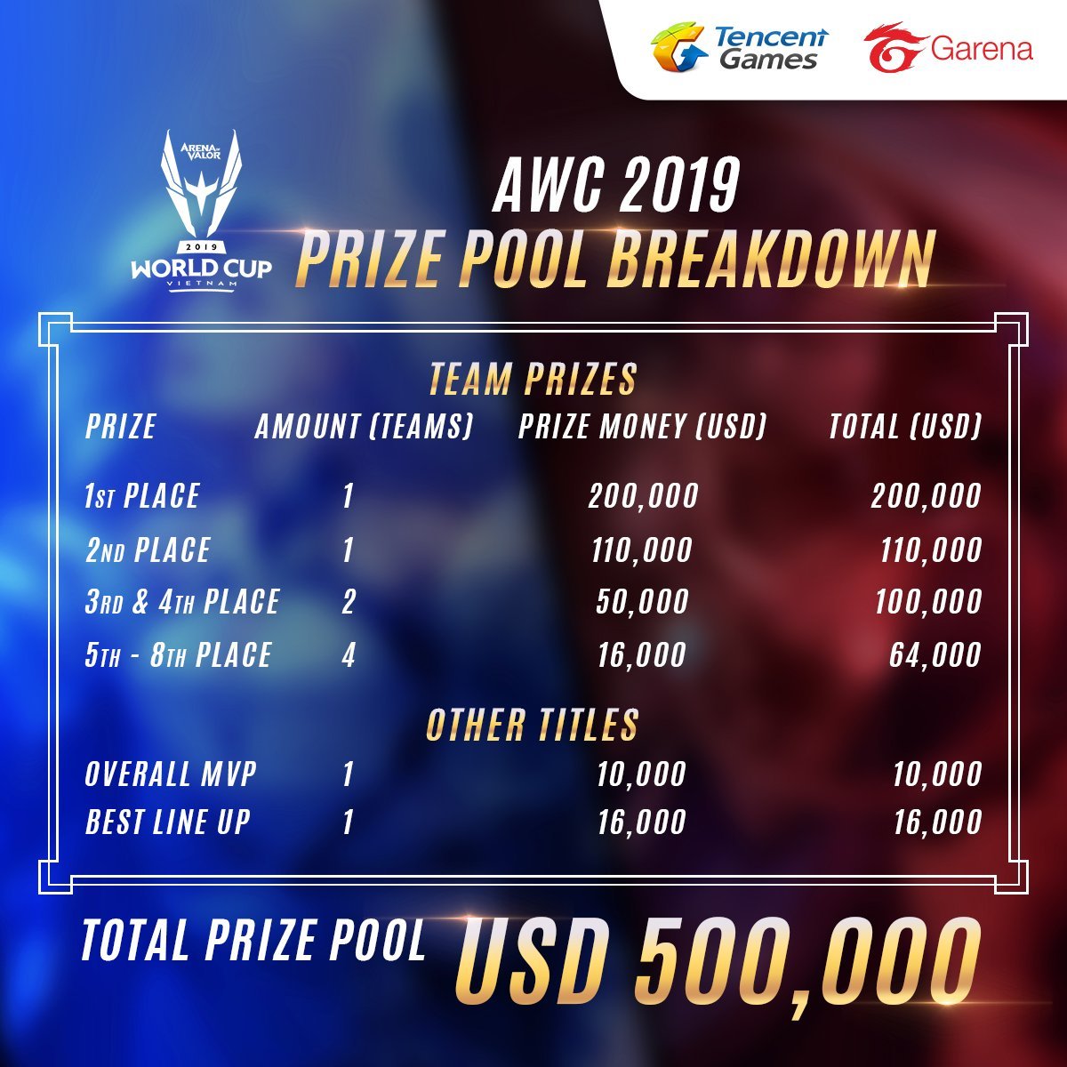 This year’s AWC 2019 will have a total prize pool of 500,000 usd, with a cool 200, 000 usd for the champion, a 110,000 usd for the first runner-up and the 50,000 usd for the 3rd and 4th placed winners.