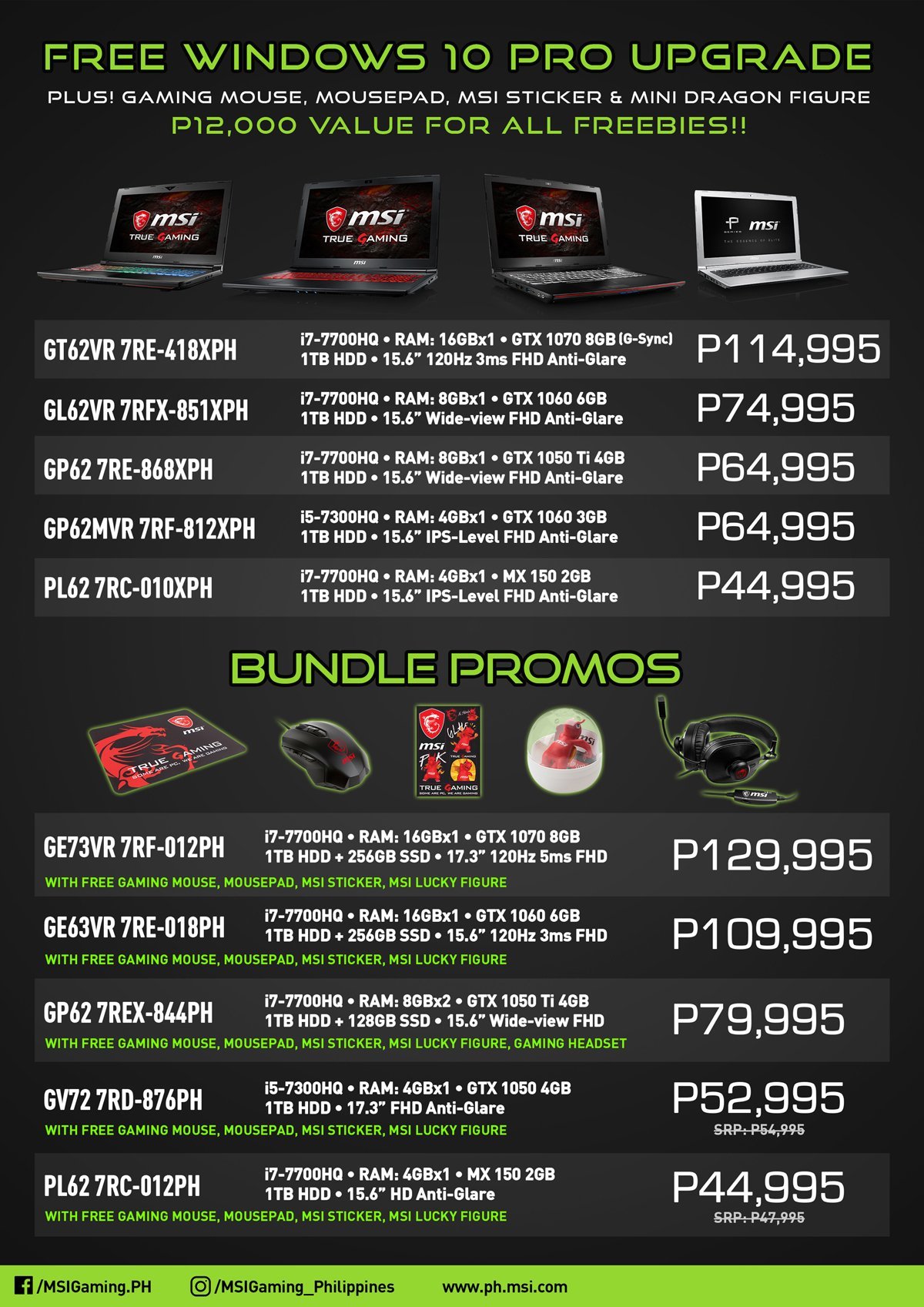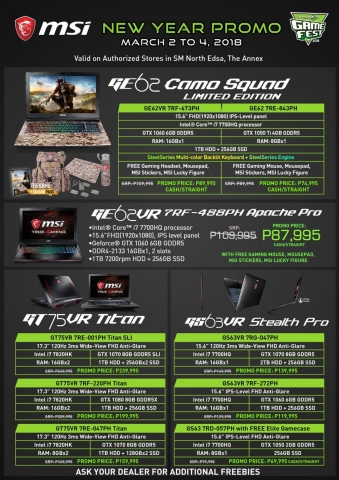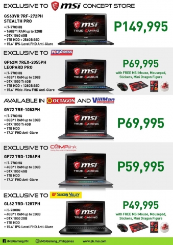 The event will also have the extended New year promotion. You can also visit the MSI Concept Store or MSI authorized re-sellers in the SM North Edsa Annex to avail the promo. As reference, here’s the pricelist: