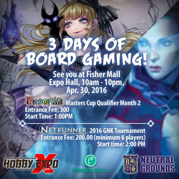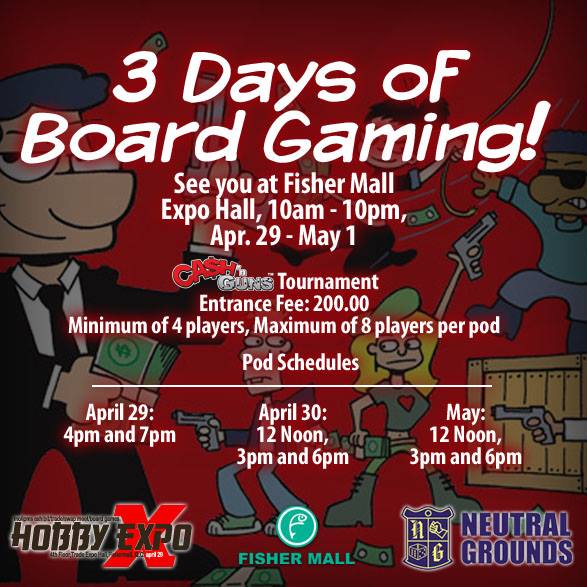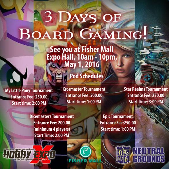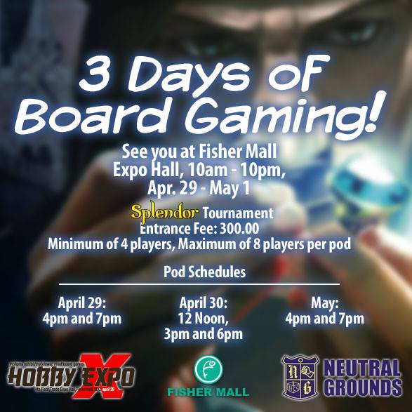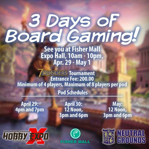 Neutral Grounds has announced that it will hosts various Board Game tournaments during the Hobby Expo starting this Friday to Sunday.