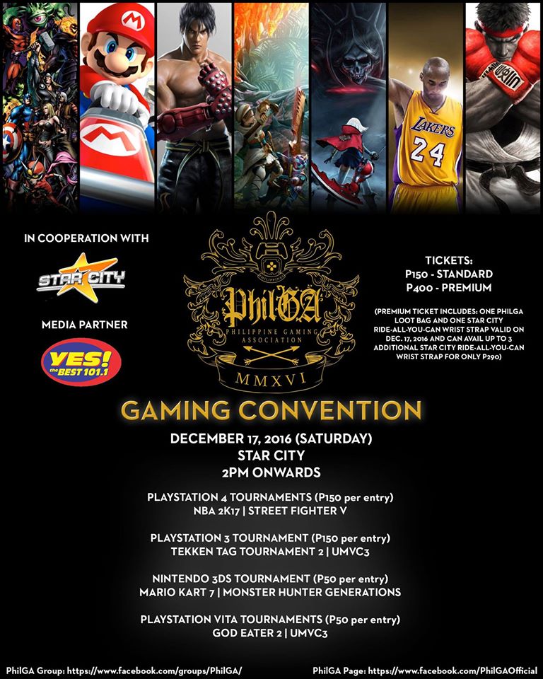 Titled as the Philippine Gaming Association Gaming Convention. The event is a collaboration between PhilGA founder Jay Perillo, Star City, and Yes The Best Manila. The event will happen within Star City on December 17, 2016 from 2:00 P.M. onwards.
