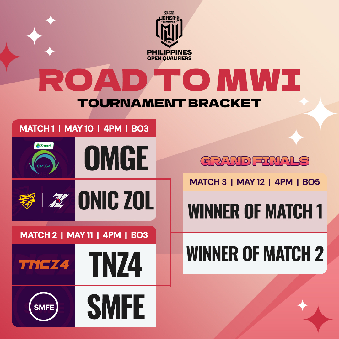 The MWI: Road to Finals 2024 will have the grand finals this May 12. Contending teams 2023 SEA Games Silver Medalists Smart Omega Empress, Franchise Team Qualifier winner TNCZ4 FE, and Open Qualifier champions ONIC ZOL and Super Monching FE.