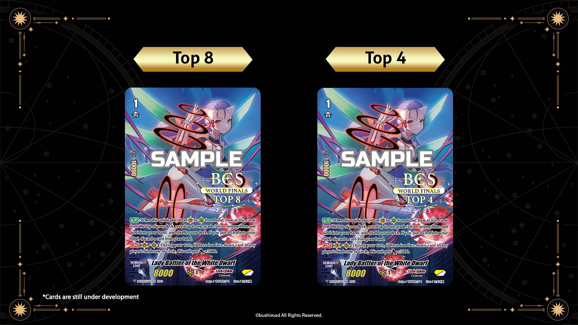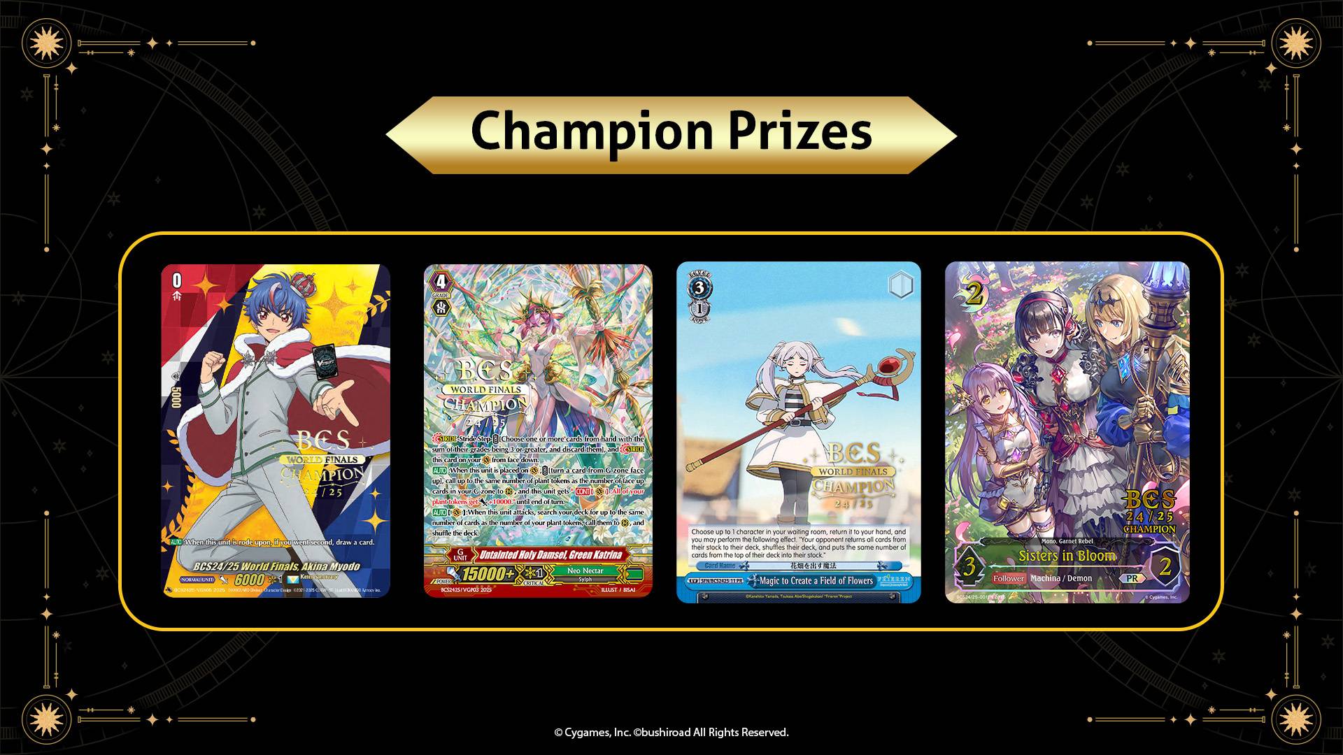 Bushiroad Championship Series 24/25 World Finalists receive exclusive supply sets for their respective games. Kits will include the following: