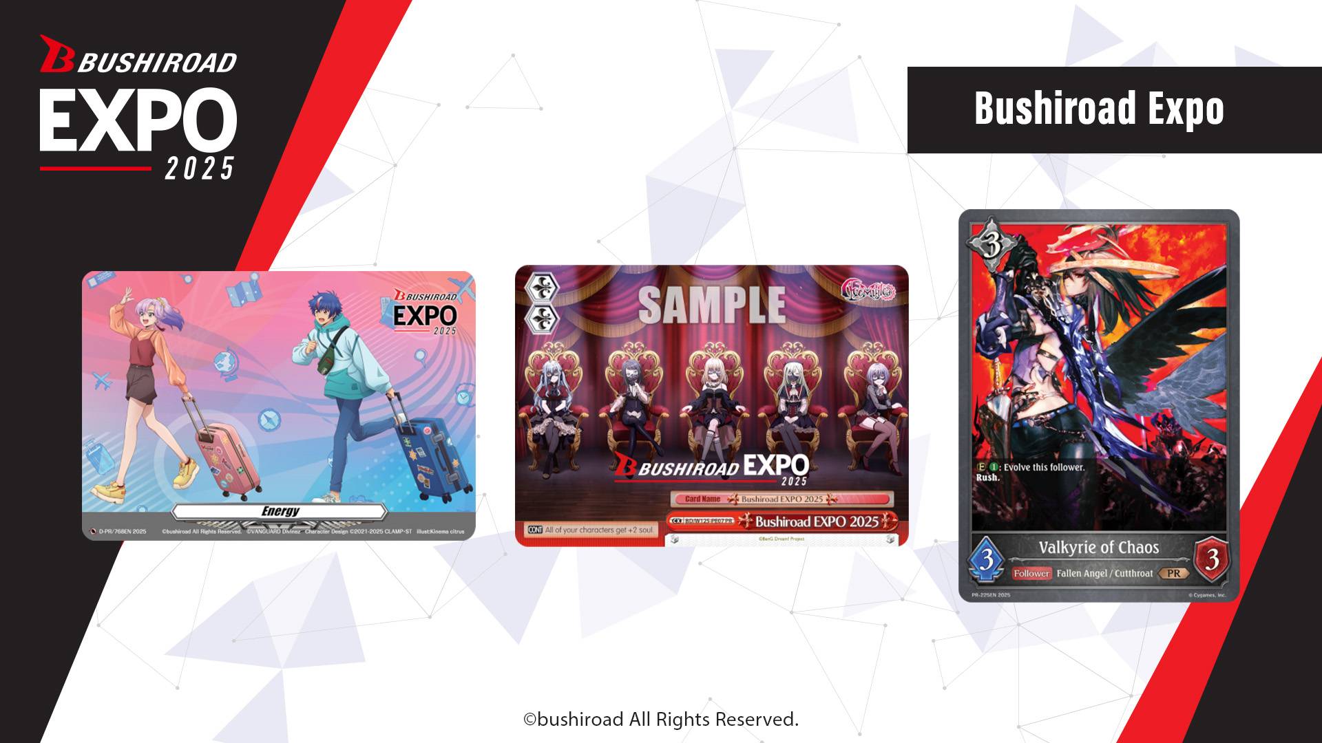 Bushiroad EXPO will continue this year with more locations than before. Attendees will receive the ff. promo cards.