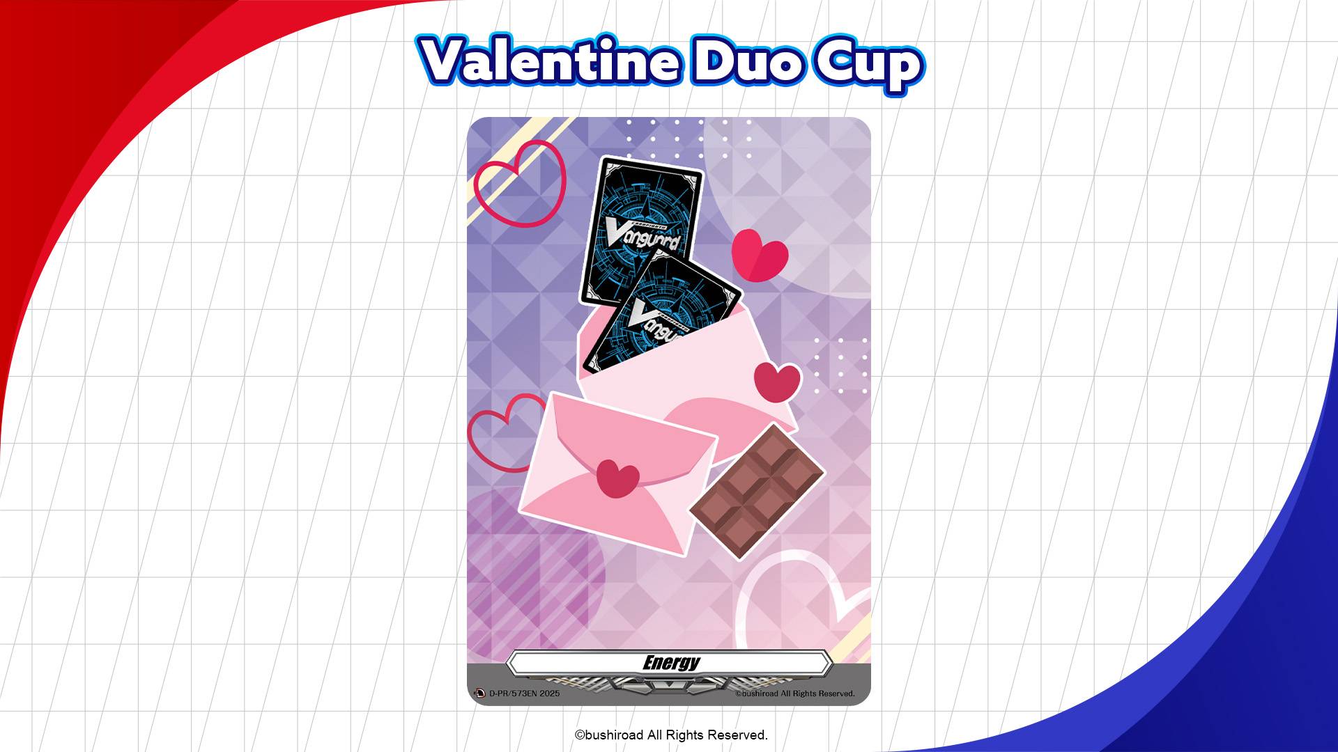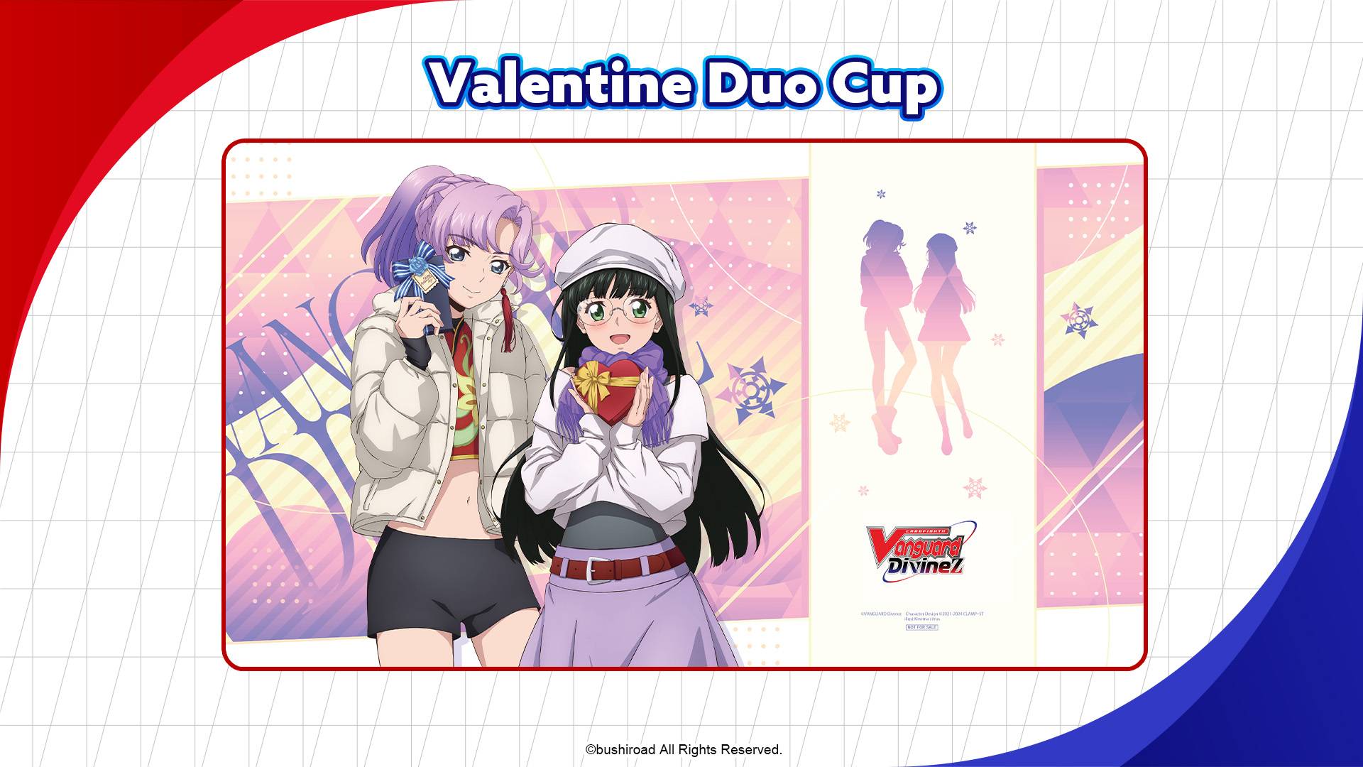 The Valentine Duo Cup will take place this February. Players can pair up to compete for an exclusive playmat featuring Nao and Mikoto from the anime. Each pair will also receive a themed energy card.