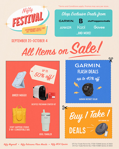 The Nifty Festival will be held in various store locations across Metro Manila, specifically in SM Megamall, Robinsons Place Manila, and SM Mall of Asia Arena.