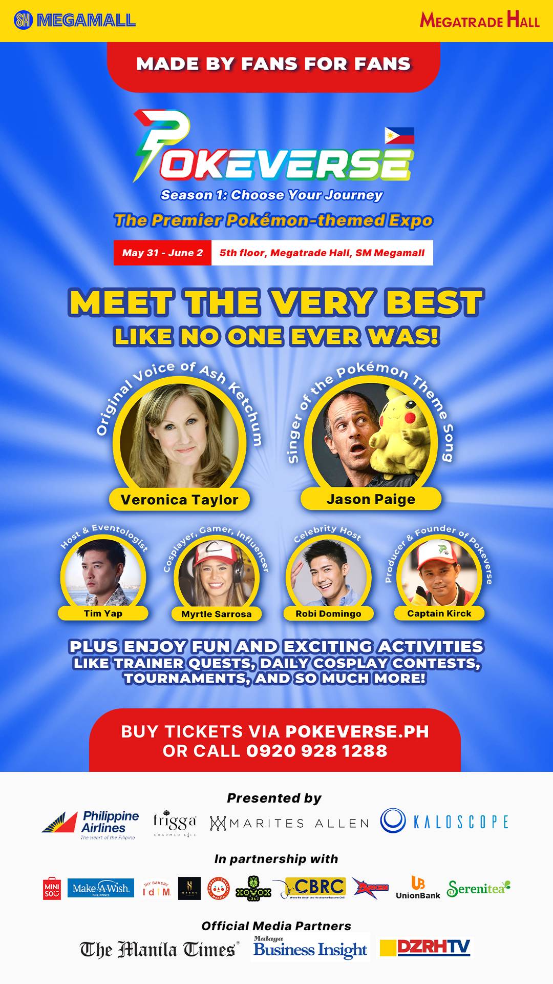 Get ready to be thrilled as Veronica Taylor, the original voice actress of Ash Ketchum, and Jason Paige, the iconic singer of the Pokémon theme song, join the Pokeverse Expo! Their presence adds an extra layer of excitement to this already electrifying event. You’ll also have the chance to meet beloved Filipino celebrities Myrtle Sarrosa, Robi Domingo, and Tim Yap.