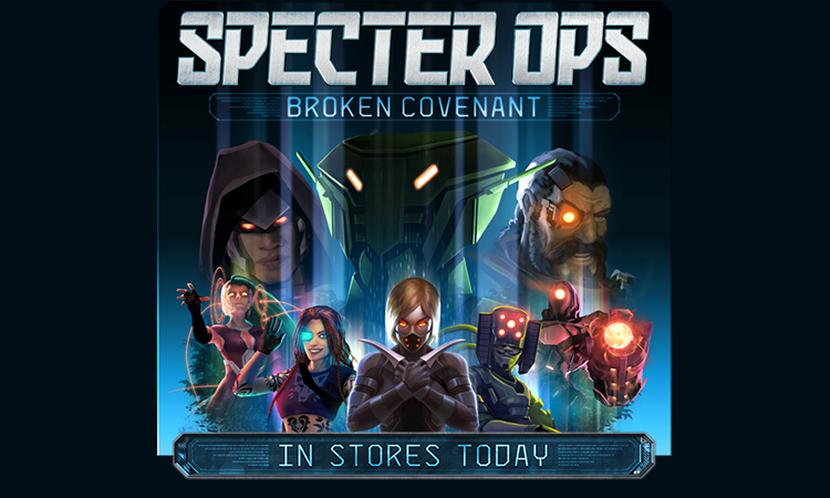 Specter Ops: Broken Covenant is a new game by Plaid Hat Games where 1 player takes the role of an agent on a mission to retrieve 3 mission targets in an abandoned science facility.