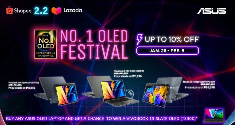 Enjoy free shipping nationwide and get a chance to win a Vivobook laptop when you purchase any ASUS OLED laptops through the ASUS Official Store on Shopee and Lazada from January 28 to February 5, 2023 only.