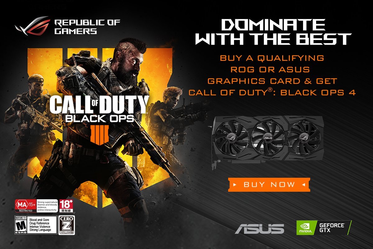 Consumers who will purchase eligible graphics card product/s from participating dealers* during the limited promotion period, beginning September 10th, will receive access to the Digital Standard Edition of Call of Duty: Black Ops 4. To claim an activation code, end-users will need to register an account on the redemption page. A proof of purchase and the serial number of the product should be uploaded on the redemption page which will be used to verify the purchase, once cleared, the user will be given an activation code through email within 20 working days. For more information, you can visit their website here.