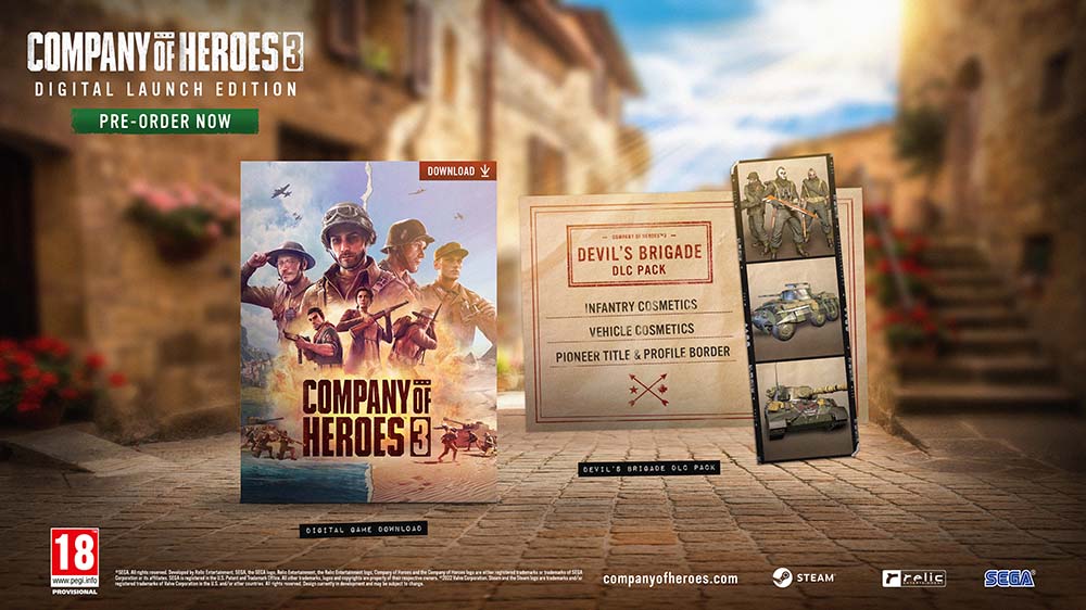 Players can pre-order Company of Heroes 3 at CompanyOfHeroes.com and receive some awesome bonus items at launch. The Digital Premium Edition comes with the Devil’s Brigade DLC Pack, containing cosmetics based on the first elite commando units of World War II.