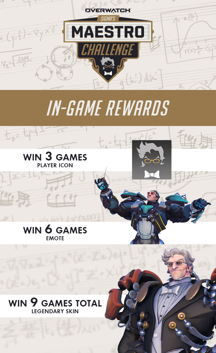 Your wins in Quick Play, Competitive Play, or Arcade will earn you new player icons, a new emote, and a new legendary skin: Maestro Sigma!