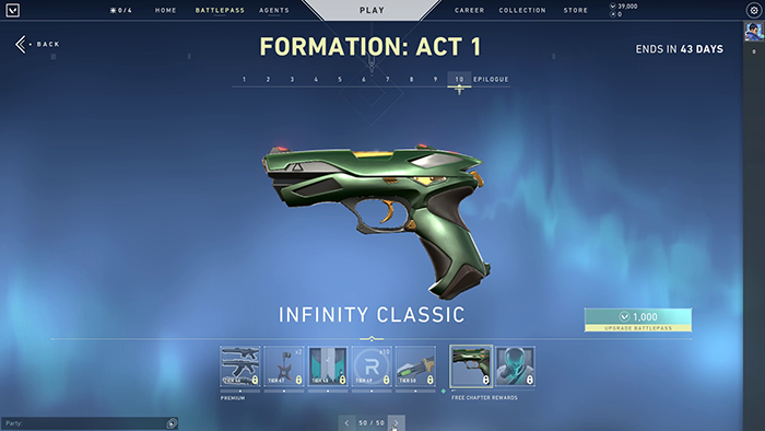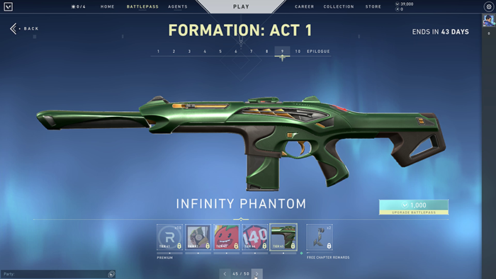 For the episode’s opening salvo, we’re getting three variant gun skins, which are namely, Infinity, Outpost, and Aerosol Gun Skins. As per usual, the gun skins can be accessed as you go through the battle pass along with titles, (free) Radianite, and, Cards to spruce up your in-game cards.