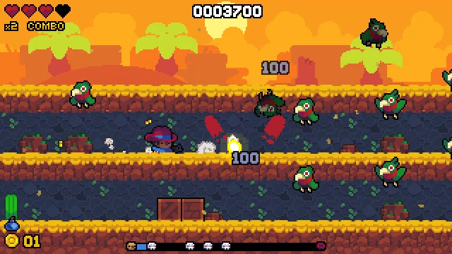 High Noon Revolver is a 2D Action Shooter; blast your way across 3 layers of platforming, collecting gold and obtaining upgrades helping you go from puny to powerhouse. Play as a cast of colorful characters, each with unique weapons and abilities (like Chickens with Shotguns and Robots with Swords!). Chase down and collect bounties on Wanted outlaws everywhere from Sunken Ships to Haunted Mansions!