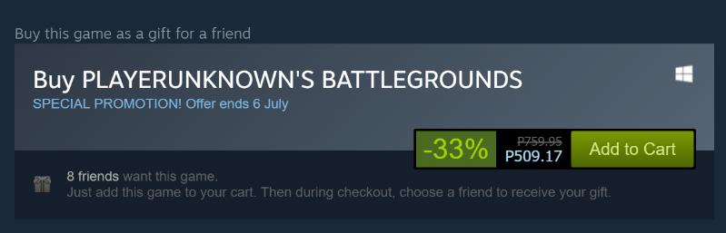 If you haven’t picked up PlayerUnknown’s Battlegrounds just yet (I mean come on it’s only 759.95 php for us here in the Philippines) This is the best time for you to get the game since it’s currently on sale over at Steam.