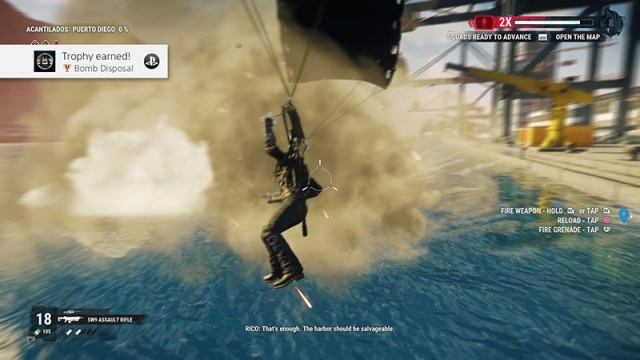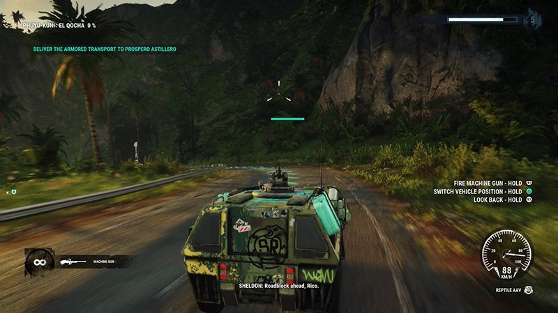 Your main objective this time around is to take out Project Illapa, a series of superweapons with the ability to create extreme weather patterns and wreak massive amounts of destruction at the push of a button. The main mission line sees you wrecking components of the superweapon and learning a little bit more of Rico’s own family history along the way. The main plot’s nothing to write home about, but what’s there is serviceable. Again, the villains are under-utilized, even more so in here, with Oscar Espinosa barely making his presence felt.