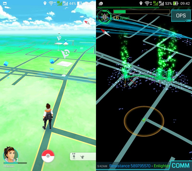 And here’s a side-by-side look of a Pokestop and Gym here in Pasay with three portals found in Ingress: