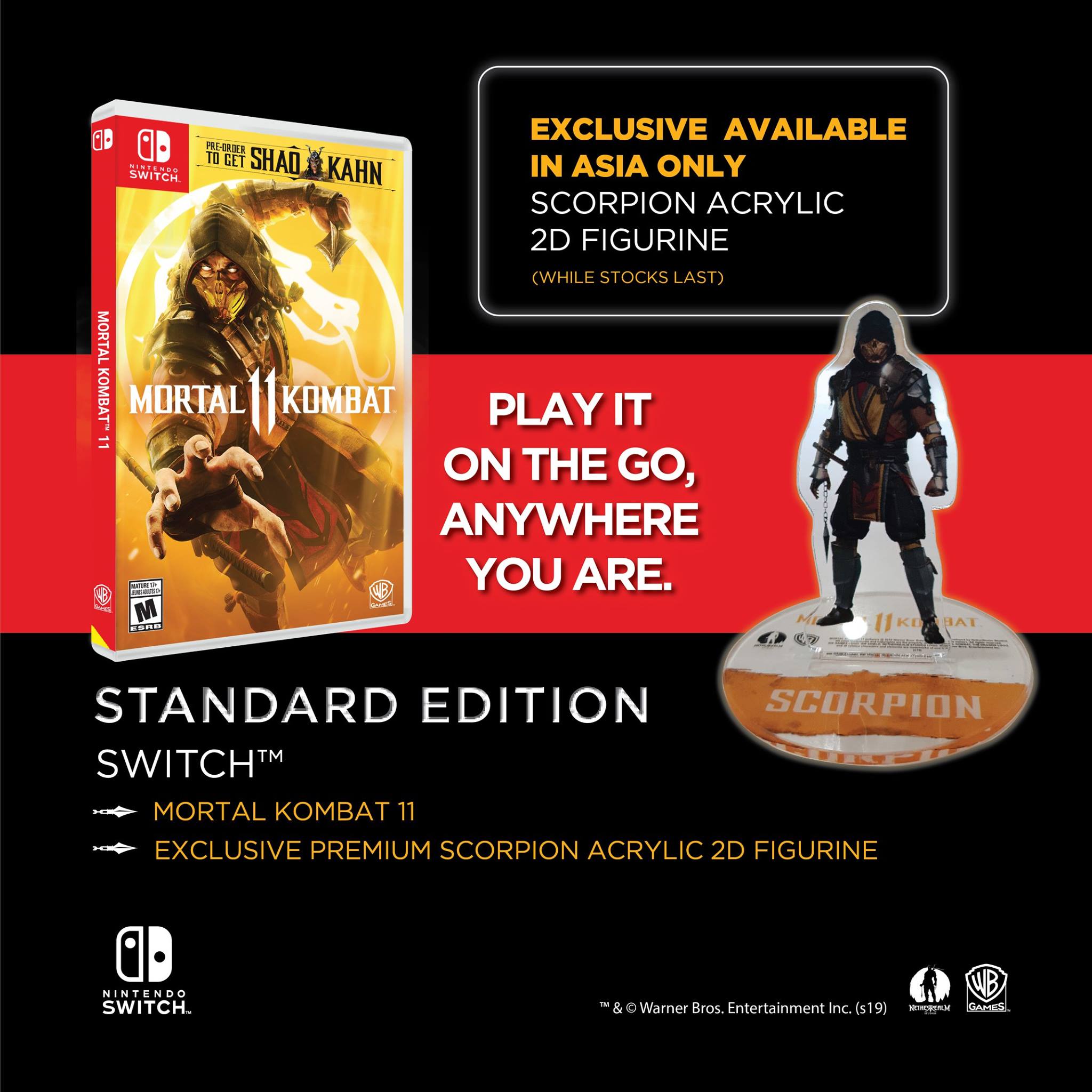 But don’t worry, Asia also gets its own exclusive. The Standard Edition for the Nintendo Switch comes with both the game and an acrylic 2D figure of Scorpion, as shared by Maxsoft on their Facebook page.