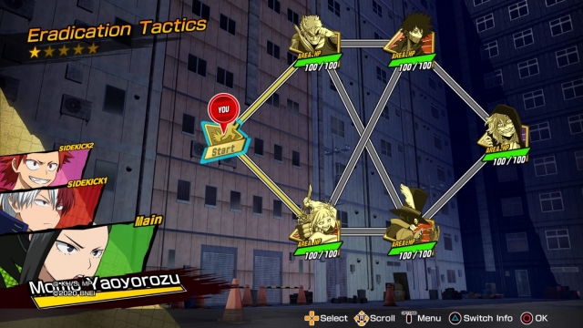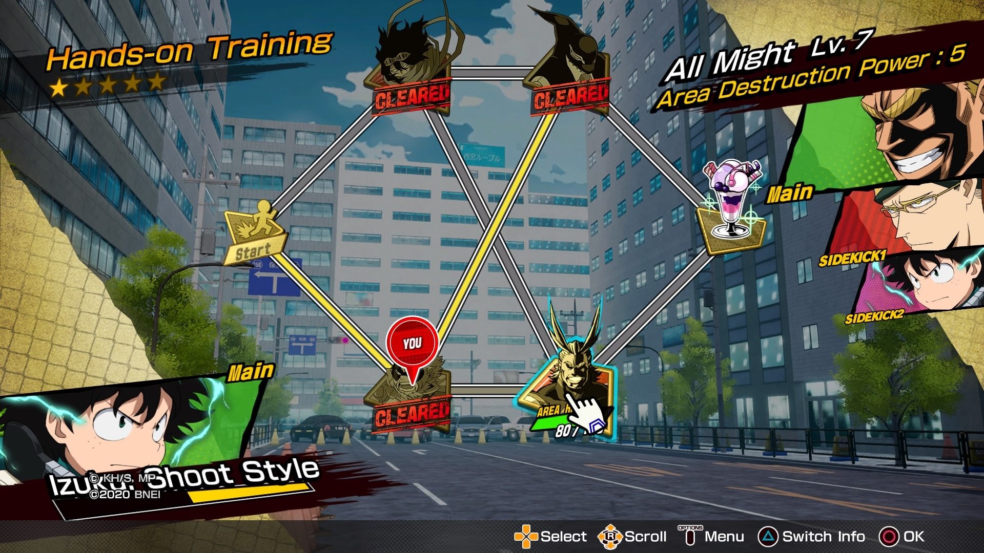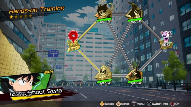 Rounding out the package are the expected Story, Free Battle, Arcade, Online, Training, and Customization modes. If you’re new to My Hero Academia, coming here for the story may be an exercise in futility as you’re really better off just watching or reading it. Do that, then come back to this to relive key moments and fights from the show’s third and fourth seasons. Playing other modes nets you Hero Coins, the in-game currency which you can then spend on a wide array customization items or recruiting new heroes for your office in Mission Mode. It’s a neat little way to incentivize spending time in different parts of the game. In fact, I managed to amass a fair amount of credits just by playing a couple hours of local versus.