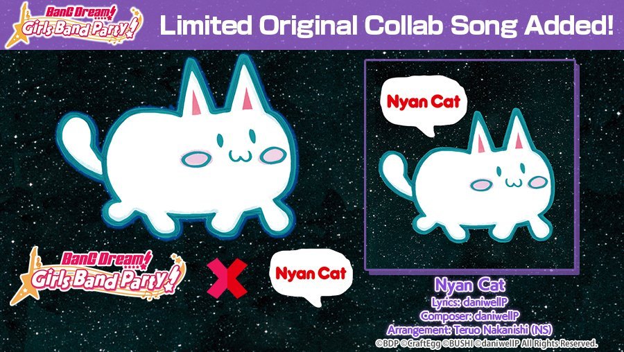One of the most popular things to come out of the internet in its early stages was a song. Some would describe it as iconic, cute, but I’m sure a lot of us found it annoying. What I’m about to share may blow your minds. BanG Dream! Girls Band Party!, the music rhythm game for mobile, has partnered with Nyan Cat from daniwellP. The collaboration will consist of only one song, Nyan Cat. How they plan to make the song entertaining to play on, I don’t know, but you’re welcome to try it out now until Oct. 14, 2020.