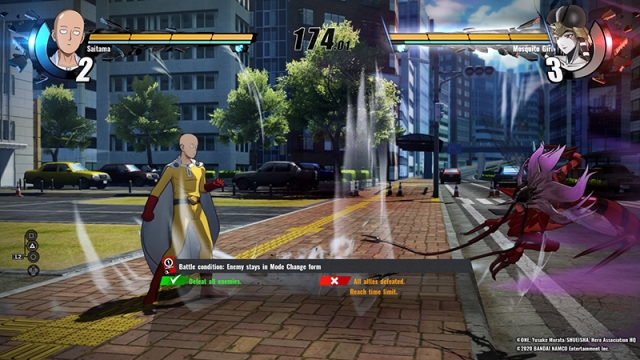 You read that right. In A Hero Nobody Knows, you’ll be taking control of your own original character as you experience the events of the series from their perspective. One of the earliest examples in the game is the encounter against Vaccine Man where you hold him off until Saitama arrives on the scene. Once he gets to the fight, just press square to win. Saitama in story mode is as ludicrously overpowered as he is in the source material, and we appreciate that touch. Outside of these familiar scenarios, the majority of the game’s story missions will have you taking on requests from the Hero Association in order to rise through the ranks and bolster your abilities. Rinse, and repeat.