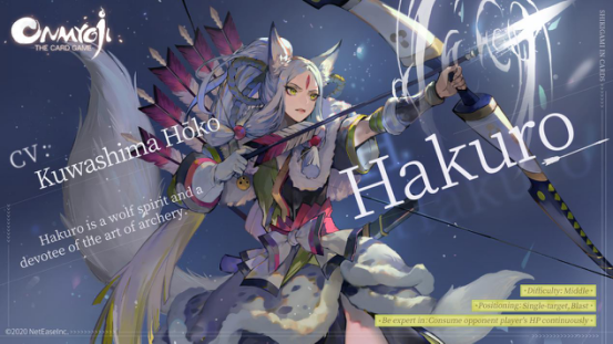 Hakuro is a wolf girl that is learning the art of archery. Once one of Seimei’s Shikigami, but she decided to leave later on. As an archer, she admired the archery of Hiromasa. Yet, she was frustrated by her stagnant skills. Eventually, she figured out the reason. Her positioning in Onmyoji: the Card Game is Single-target and Blast. She can consume the opponent player’s