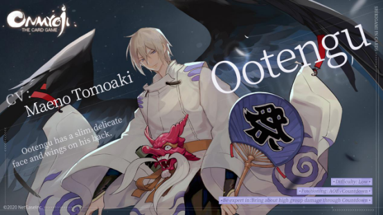 Ootengu has a comely face and wings on his back. He is good at the flute, and his tunes can calm one down. He has a stubborn and cold personality, which makes him easy to be influenced. In fact, he is an upright yokai of principle. Once he acknowledges a master, his loyalty is second to none. His positioning in the game is AOE and Countdown. He can deal high damage to multiple targets by using countdown.
