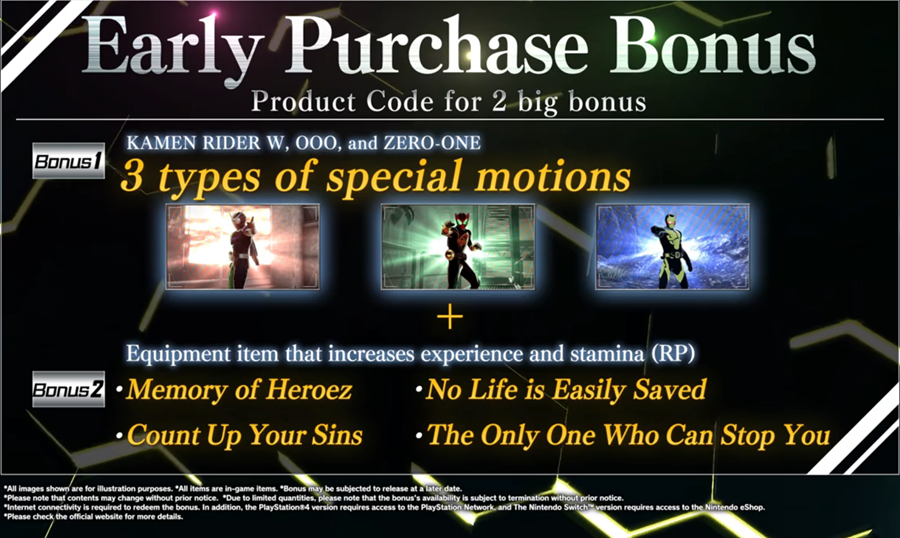 This upcoming title will have the three riders will be released on October 2020. Memory of Heroez will be the very first Kamen Rider Hero Chain Action for the console. The announcement also mentions that there will be time-limited Prime Sound Edition.