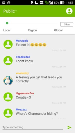 The game’s chat feature is currently really basic with the recent addition of private messaging other players in the area. The app actually fills in what seems to lack in the actual Pokemon Go app, a means of being able to communicate with other players in the area.