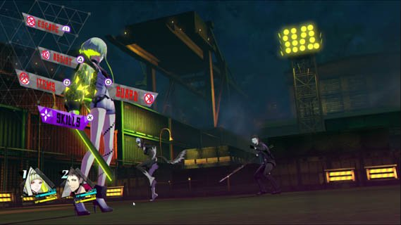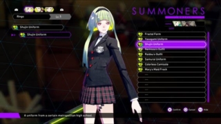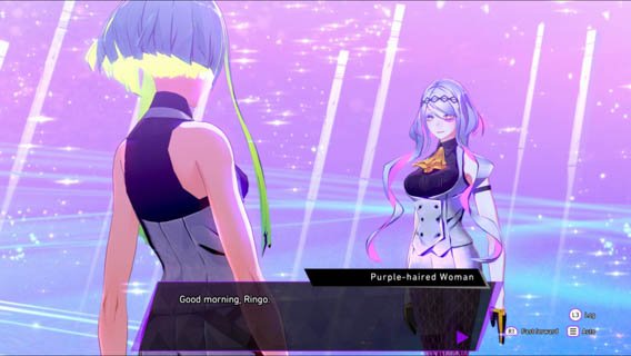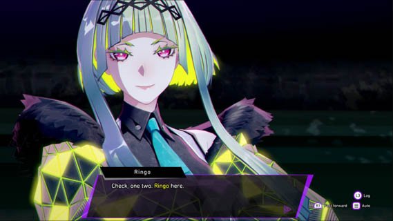 The game is set in a cyberpunk Japan, leaning into the “hacking” aspect more with an edgy dystopian futuristic aesthetic. It fits the story of our main heroine – Ringo – and her sister, Figue (peep the fruit theme) being personifications of an artificial intelligence set to prevent doomsday, but it feels like it was mostly done to have everyone dress up in neon-lined fashion forward ensembles – which I’m not mad at as every major character design here looks amazing. It even extends to the tessellation grid visuals of the menus. After all, if an SMT game had to focus on just one thing, it HAD to be the aesthetics.