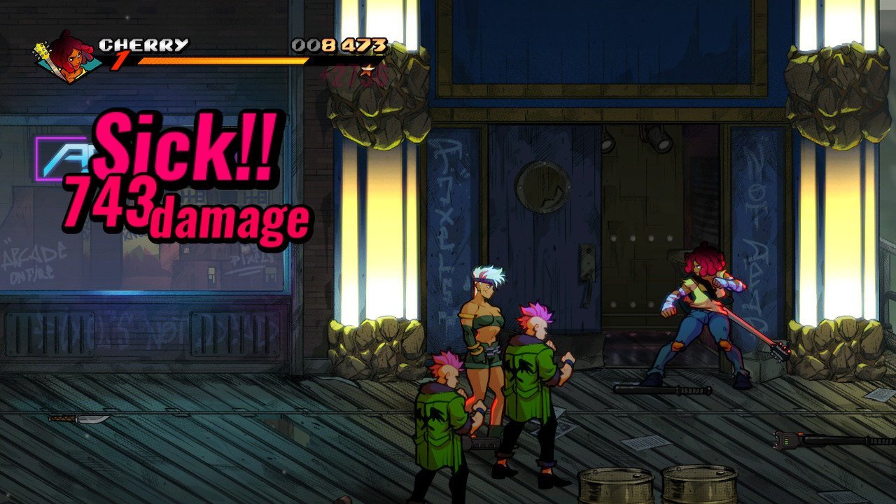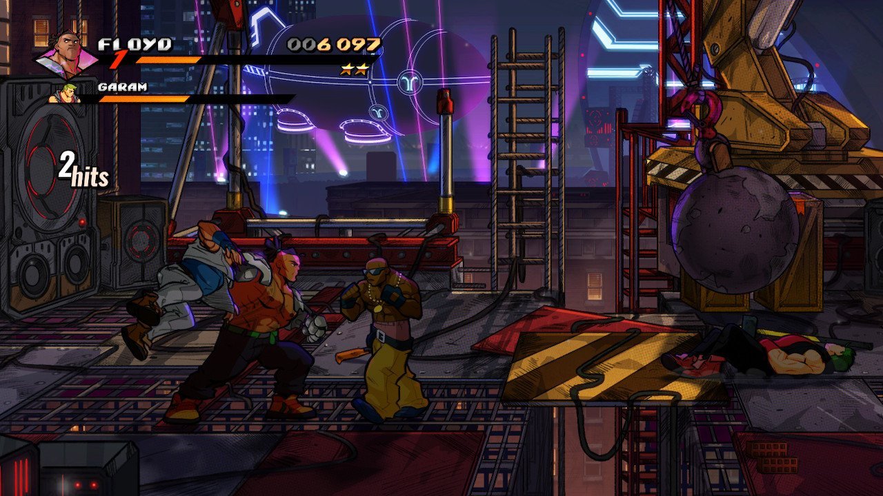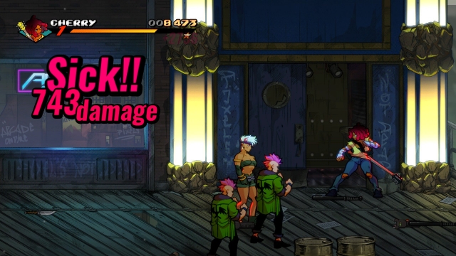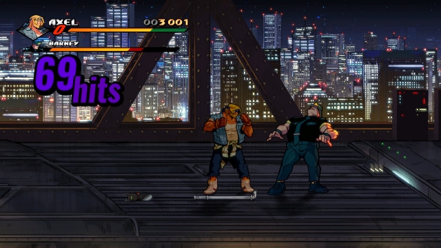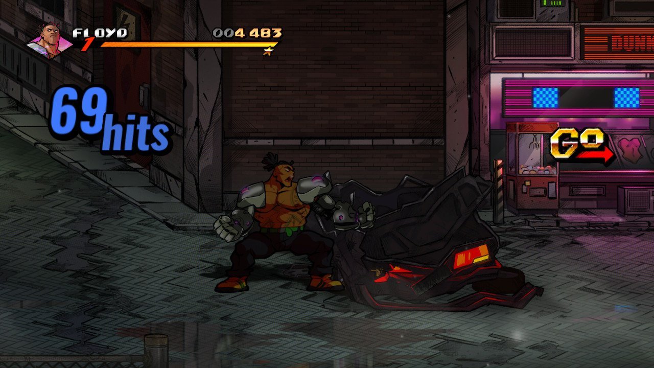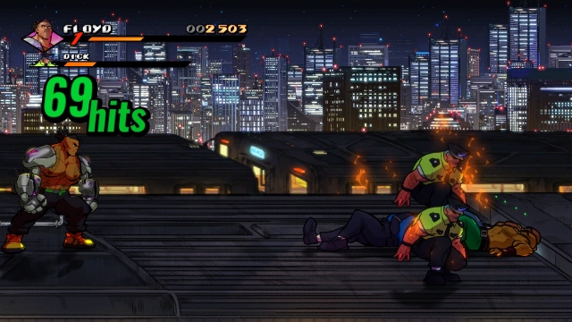 Keeping with series tradition, mainstays Axel Stone and Blaze Fielding are back, albeit older and more grizzled, especially Axel. They’re joined by newcomers Floyd Iraia and Cherry Hunter, daughter of Adam Hunter from the first game, as the requisite heavy hitter and speedster in this installment. Adam himself makes a triumphant return as the first of many unlockable characters you’ll encounter in your time with this title. On the surface, while Floyd and Cherry do play into archetypes we’ve seen in earlier games, they come with some fun new twists on their respective play styles. Floyd, while expectedly strong with dismal walk speed, makes up in this department with specials that can either close the distance or have relatively generous hitboxes. Cherry, on the other hand, has a relatively low damage output that is easily overcome by her ridiculous combo potential. Axel, Blaze, and Adam fall into that middle ground of being beginner-friendly characters balanced between speed and power that still come with their own unique properties.