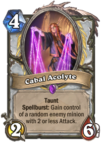 This card is basically permanent Shadow Madness on a stick. Not only do you get a 2/6 with Taunt, but you also get to steal one of their small creatures when you cast a spell!