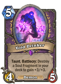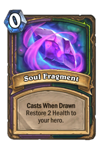 This reminds me a lot of the Voidlord from the Kobolds and Catacombs expansion. For 5 mana, you get a 4/5 with Taunt and it gets +3/+3 if you have a Soul Fragment in your deck. There are some new cards that give you Soul Fragments and this is what a Soul Fragment looks like: