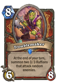 It isn’t really a board clear but this card is a little better than it looks. This to me screams pure Hearthstone RNG bound to create fun and salty times for both the opposing and defending players! For 8 mana you get a 6/8 that brings in his friends for a smackdown! He can either clear your opponent’s minions or hit face!