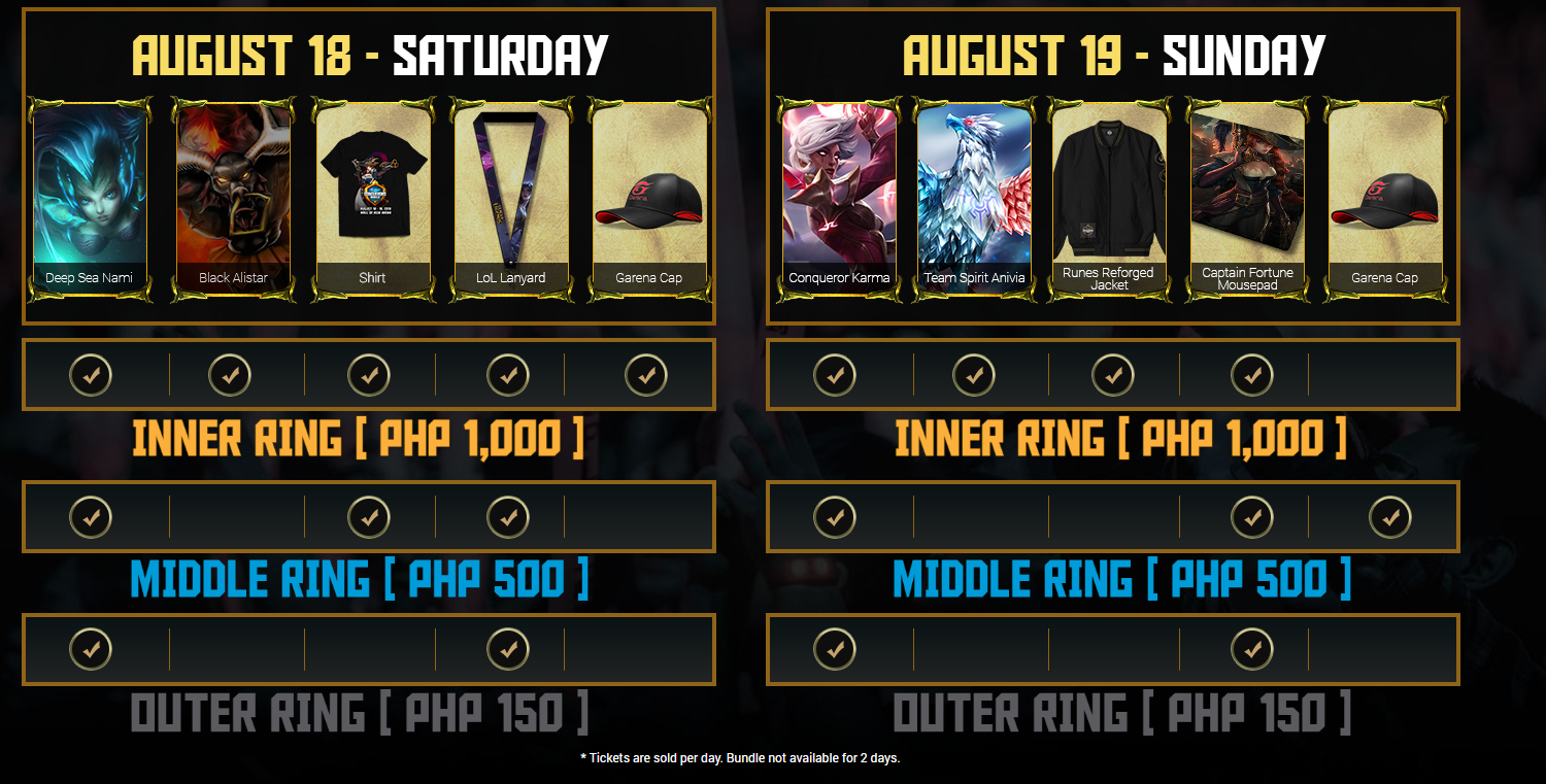 Tickets are sold per day and there are no bundles for the two days. And for the 1st day of the event will have the ff. door prizes: