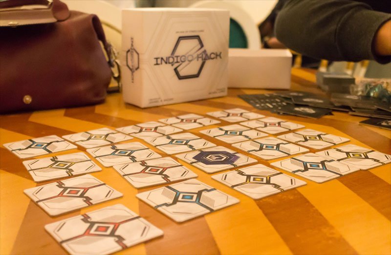 Setup is really simple, using the tiles setup a 7×7 grid with the data at the center, on the side will be the hack card deck, which contains red, blue, yellow, and gray cards. As I mentioned before, each player will take control of 1 of 4 hackers, each with their own special skills usable once per turn. They will navigate the server which is made up of a 7×7 grid of tiles colored red, blue, or yellow, with the precious data at the very center. Each player will set up their player token along with their hexagon cube on one of the corners of the grid. Along with this, each player will be given a starting hand of 2 cards, which will be used to move around, steal cards, and even make scripts.