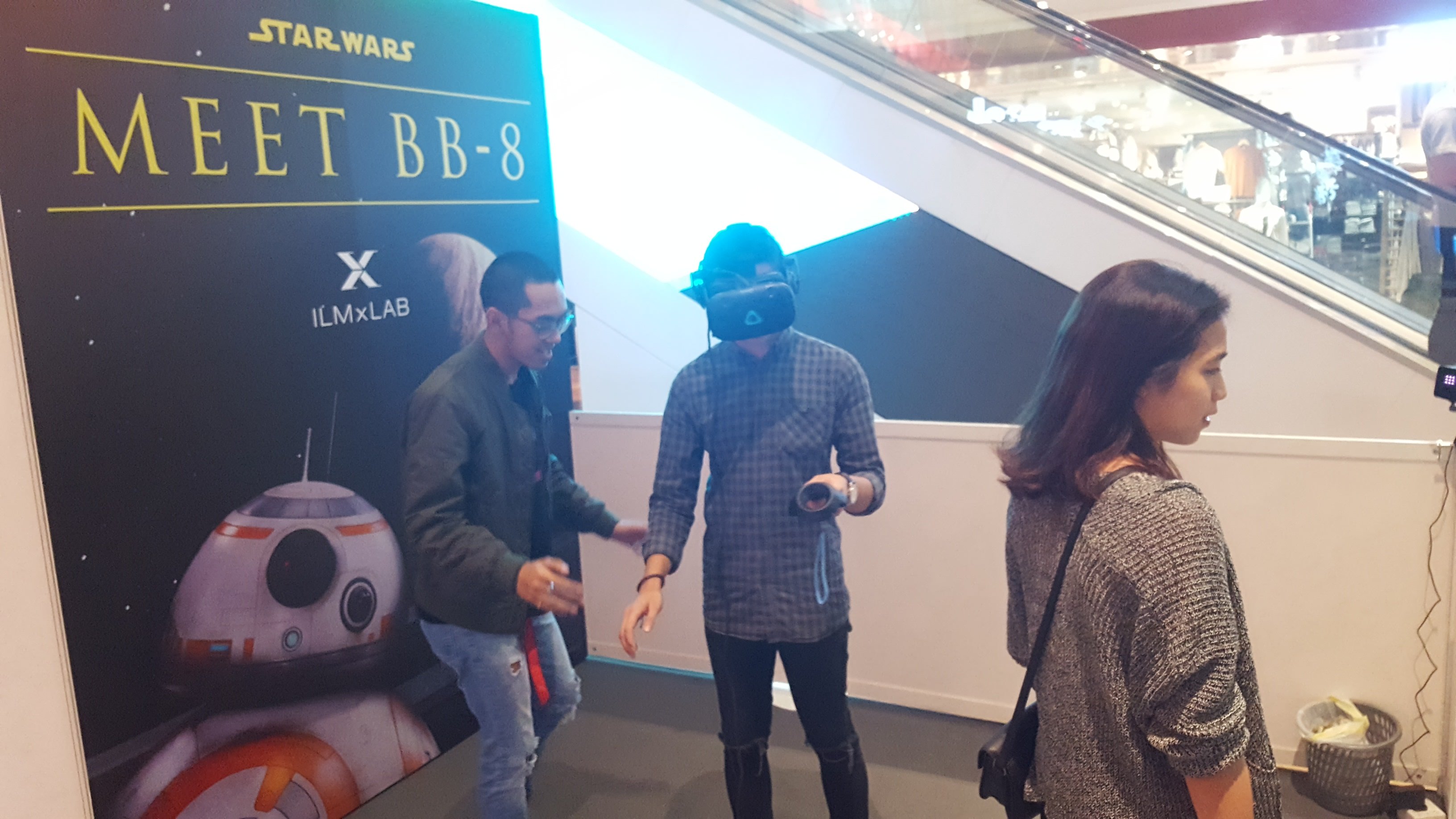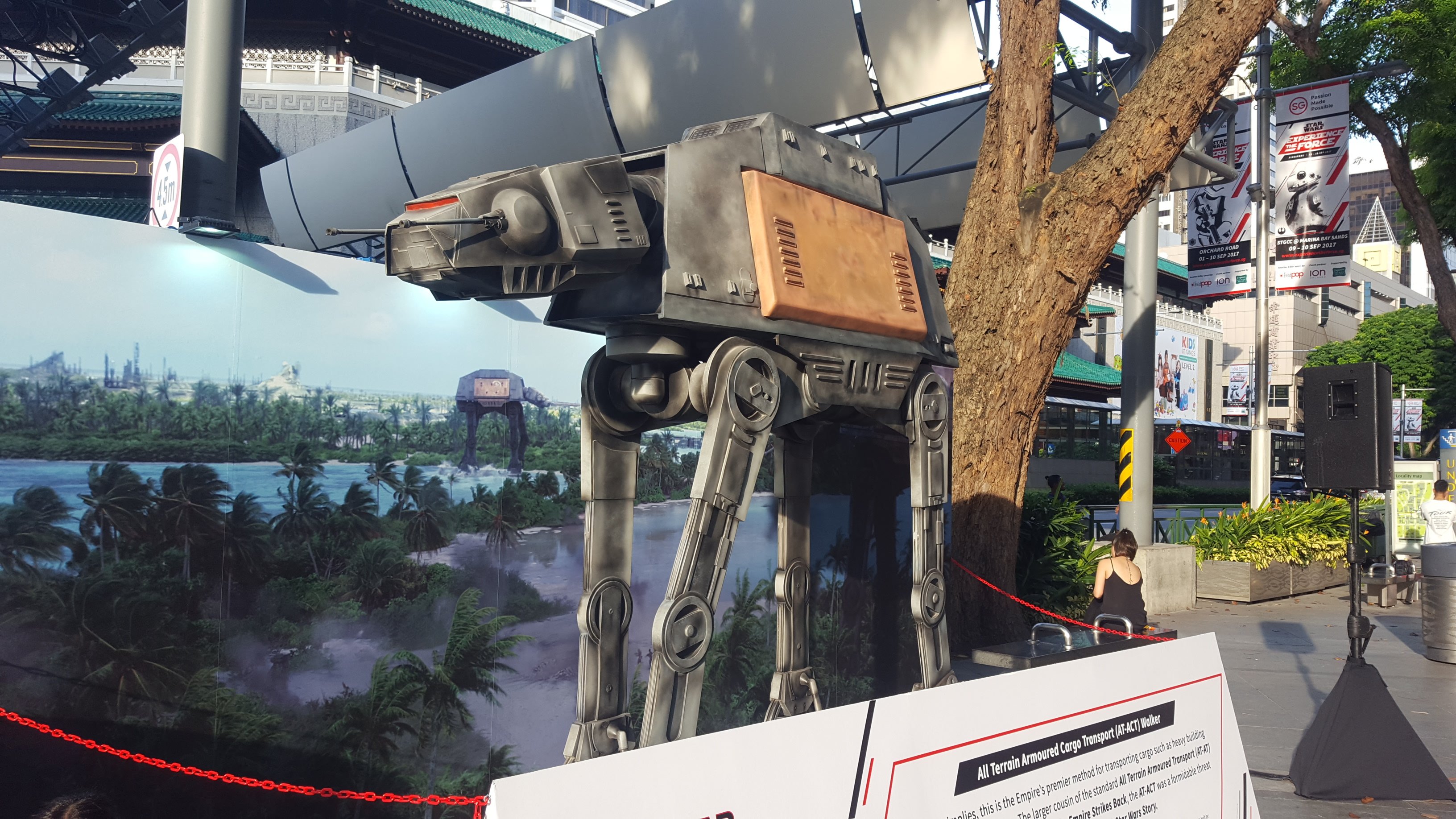 The other activities were fairly interest too though, such as a large-scale AT-ACT and Millenium Falcon model display, scheduled cosplayers to pose and have pictures with, and a funky art wall. The most interesting part though probably were the two digital experience sets – a digital interaction booth and a 3D/virtual play area with BB-8 – as well as the lightsaber Padawan training area for kids. In particular, I was a bit saddened that it was limited to Padawans (children).