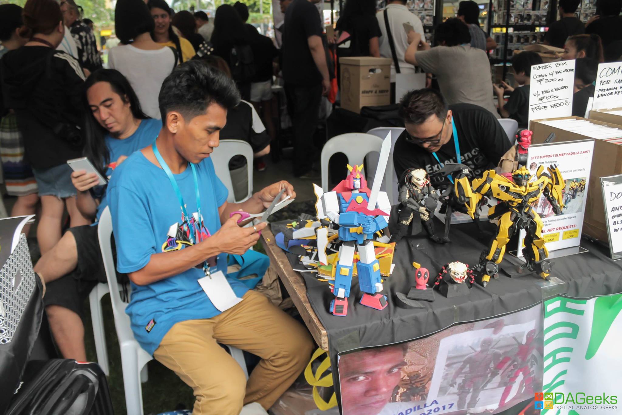 A highlight of the expo is the Comic Alley, a whole row of pop culture paraphernalia such as comic books, toys, merchandise, and many others. In this area, comic artists such as Carlo Pagulayan and Steven Segovia set up shop. Notably present in the alley as well is the recently-viral Elmer Padilla, who made pop culture characters from rubber footwear. Also in the expo is the Makers Tent, which housed S.T.A.R. Labs, Shapecloud, and Aero 360. This area focuses on the technical aspect of geekdom, featuring 3D creations, robotics, and virtual reality (VR) programs.