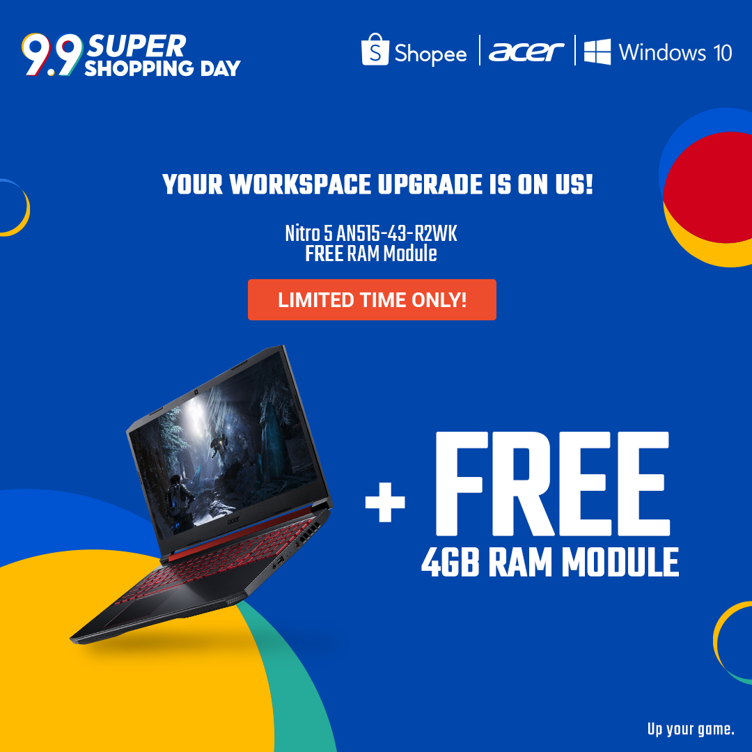 - Get a FREE 4GB RAM Module update for every purchase of a Nitro 5 (AN515-43-R2WK).