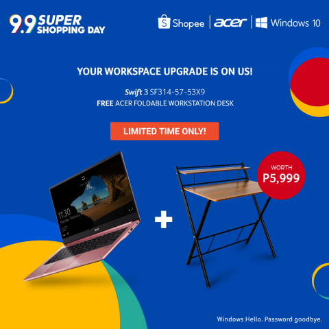 - Get a FREE Acer Foldable Workstation Desk for every purchase of an Acer Swift 3 (SF314-57-53X9). This promo bundle, worth Php 5,999, is available for a limited time.