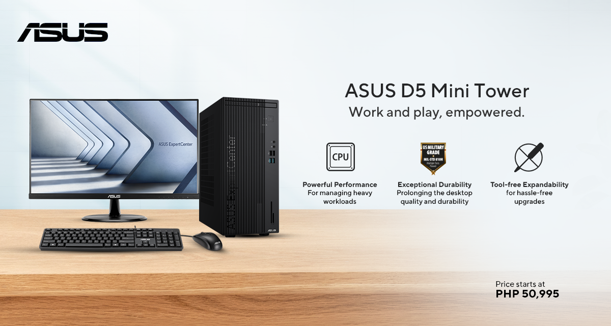 The D5 Mini Tower starts at ₱50,995. It is bundled with peripherals and ASUS Antimicrobial Guard for added hygiene.
