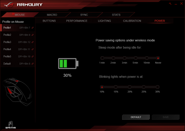 Battery life for the ROG Spatha lasts for a full 3 days of heavy wireless gaming with full RGB lighting activated. Charging time though is around 2 hours or so since the charging dock features a 500 mAh power rating.