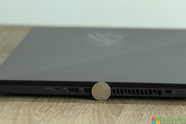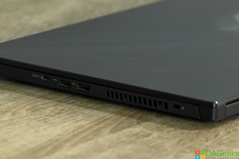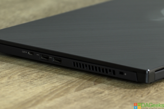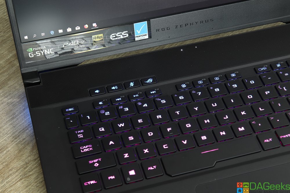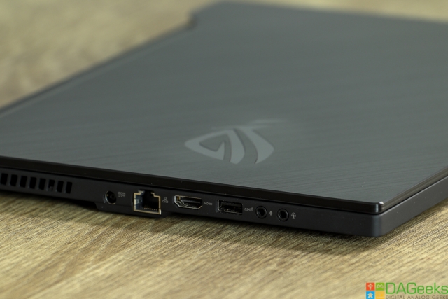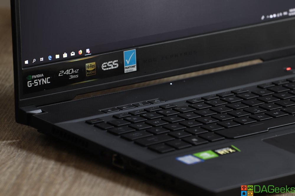 Designing such a thin and slim laptop can be challenging, as you’ll need to consider I/O ports for it to be usable without having to bring an additional hub for the ports you need. Whether you’re at work or planning to stream your game, you won’t be disappointed with the Zephyrus S. The left side is packed with the power port, an RJ-45 gigabit LAN port, a full-sized HDMI 2.0b, a USB 3.1 Gen2 Type-A, a dedicated mic in and another 3.5mm port for your headphone with mic. On the right side, you have a Kensington lock, 2 USB 3.1 Gen1 Type-A and a USB 3.1 Gen2 Type-C with power delivery. If you’re in the middle of nowhere and there’s no AC outlet nearby, you can charge the Zephyrus S with a power bank! Pretty useful in case of emergencies.