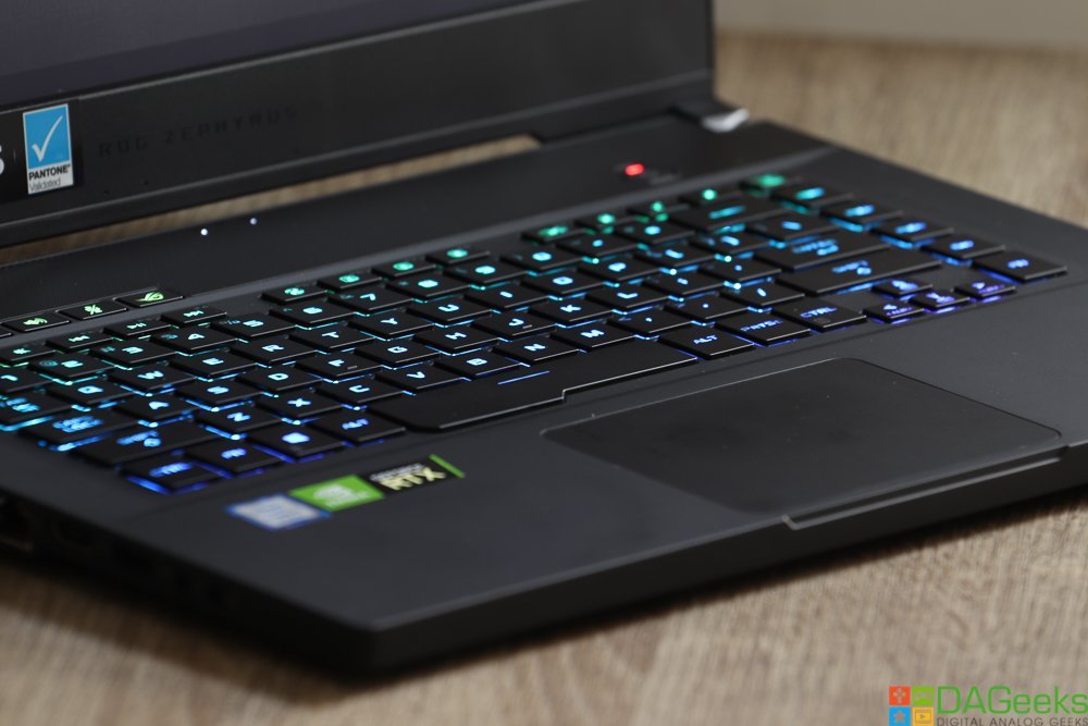 It’s hard to recognize the Zephyrus S as a gaming laptop, unless you’re all too familiar with the ROG logo. The minimalist ultra-slim profile and brushed lid gives it a professional look without being egotistical as a gaming laptop. Maintaining the weight under 2kg., the chassis feels solid enough because of the specially-forged magnesium-aluminum alloy. The honeycomb reinforcements underneath the palm rest also gives it a solid feel, with minimal flex when in use. Like its predecessors, the lid can be opened with a finger and stays in place when you need it to. You’ll also notice that the backside of the laptop raises. ASUS calls this, their Active Aerodynamic System to allow its fans to suck more air, preventing thermal throttling. The fans also have an anti-dust cooling design that drives heavier dust particles into specific dust tunnels to prevent dust build-up in the fins.
