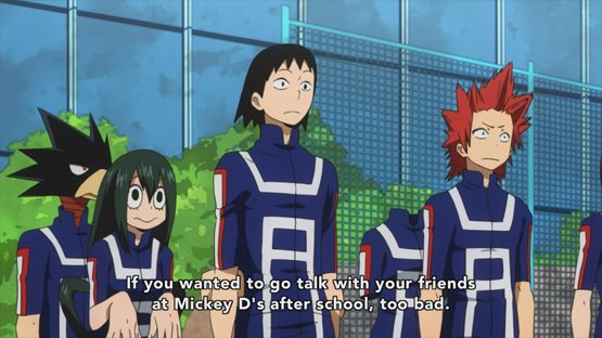 Episode five jumps off from what we have witnessed in the last part of episode 4 where we finally see Izuku donning the U.A. High school uniform. He’s part of class 1-A where we get to see familiar faces as his classmates.
