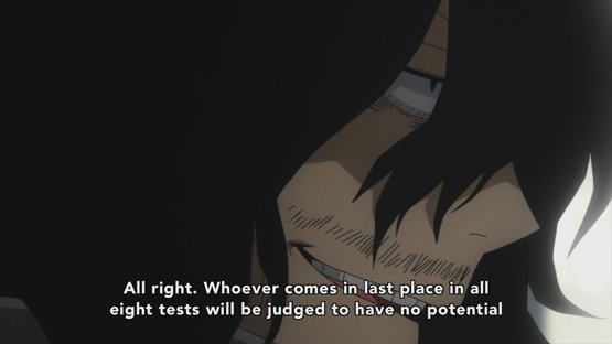 Episode 5 focuses on Izuku’s first day in U.A. High. We get to see him interact with some of the above mentioned classmates and is immediately put into the grinder as their homeroom teachers pushes the freshmen to a competition style physical/quirk assessment test.
