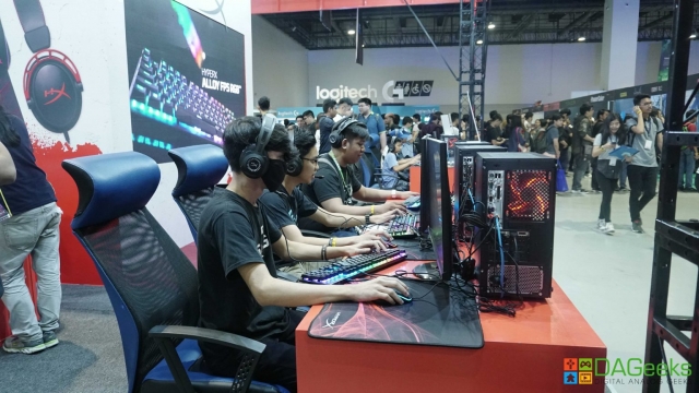 One of the world’s leading names in audio input and output flaunt their gaming line in their quaint corner of the event area.