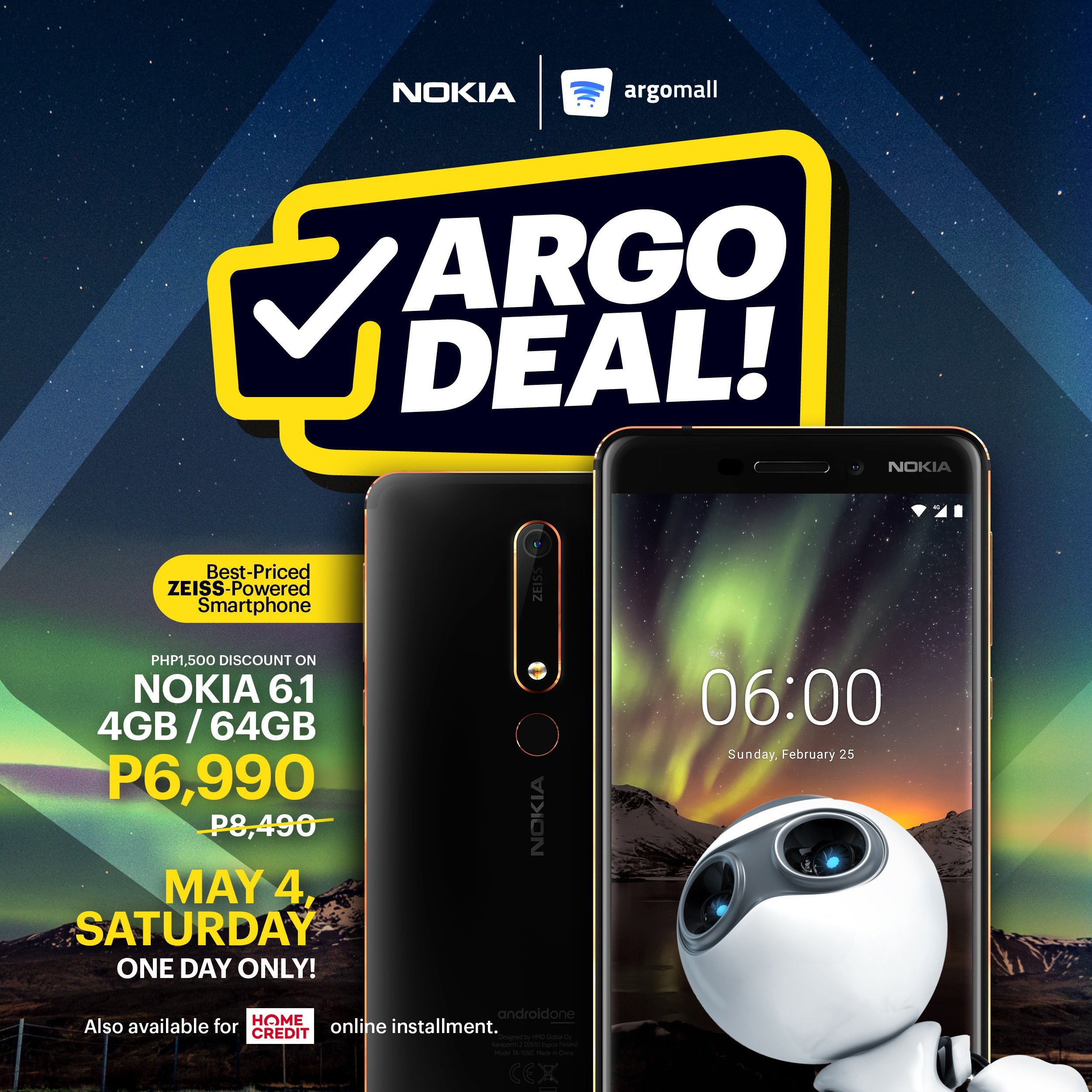 Get the Nokia 6.1 at a Discounted Price Only for Today Haoson Geek TechGeeks May 4, 2019 HMD Global has announced that the Nokia 6.1 is getting a 1,500 php price cut for only today at Argo Deal. Check out the page here.