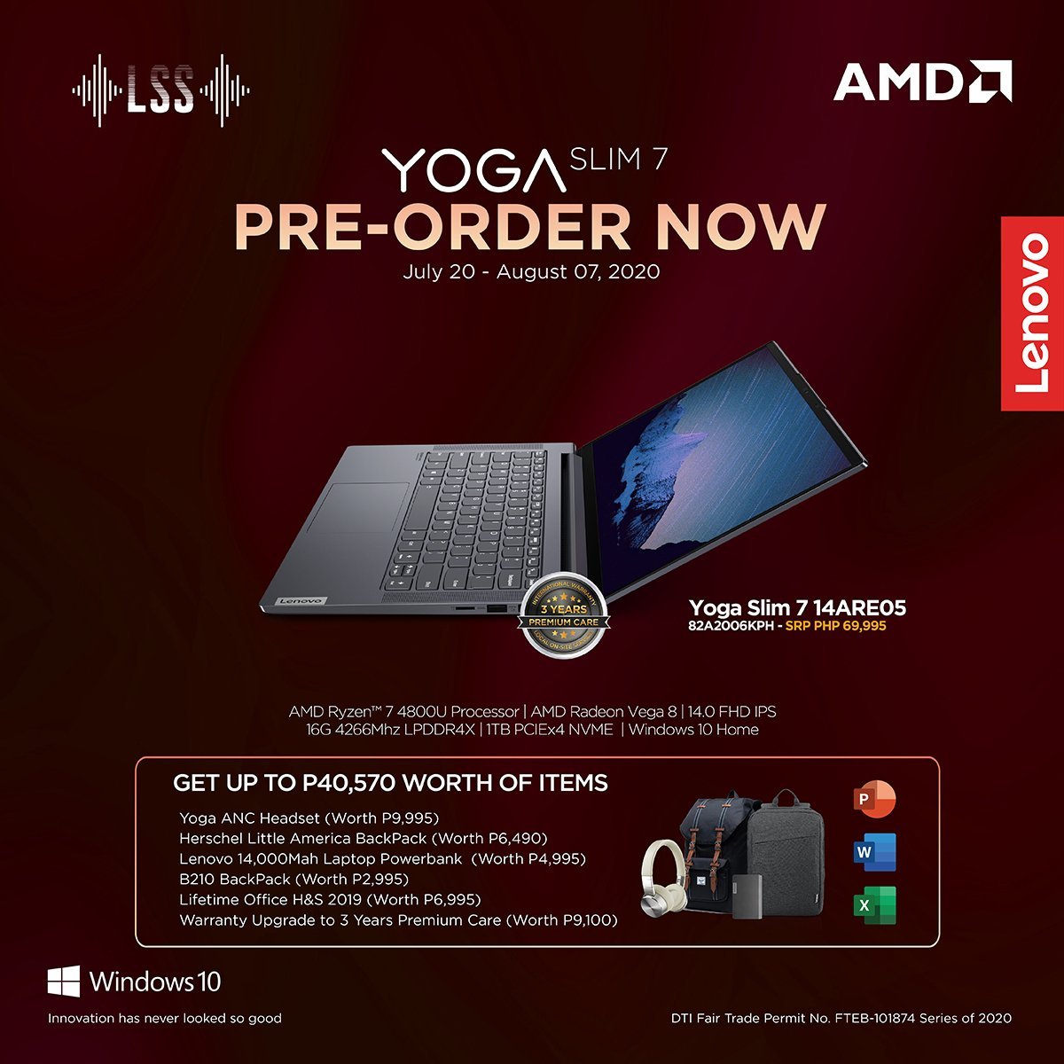Customers pre-ordering two models of the Yoga Slim 7 running on AMD Ryzen processors can get them bundled with accessories and other premium gifts worth up to ₱40,570 as part of a special promo.