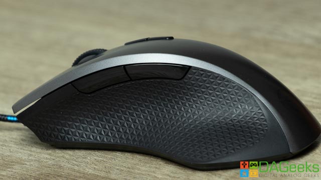 The M500 can give you a run for your money with its Omron Micro switches that are rated for 50 million clicks. No information has been given on its sensor, but it has 16,000 DPI tracking, 1000 Hz polling rate and can be calibrated on any surface via the software. It has a removable 10g weight underneath, which is not much of an option as you can only choose to have it on or not. It’s light, weighing in at only 100g, +10g if you have the weight on, and glides easily on my SteelSeries QCK+ pad.